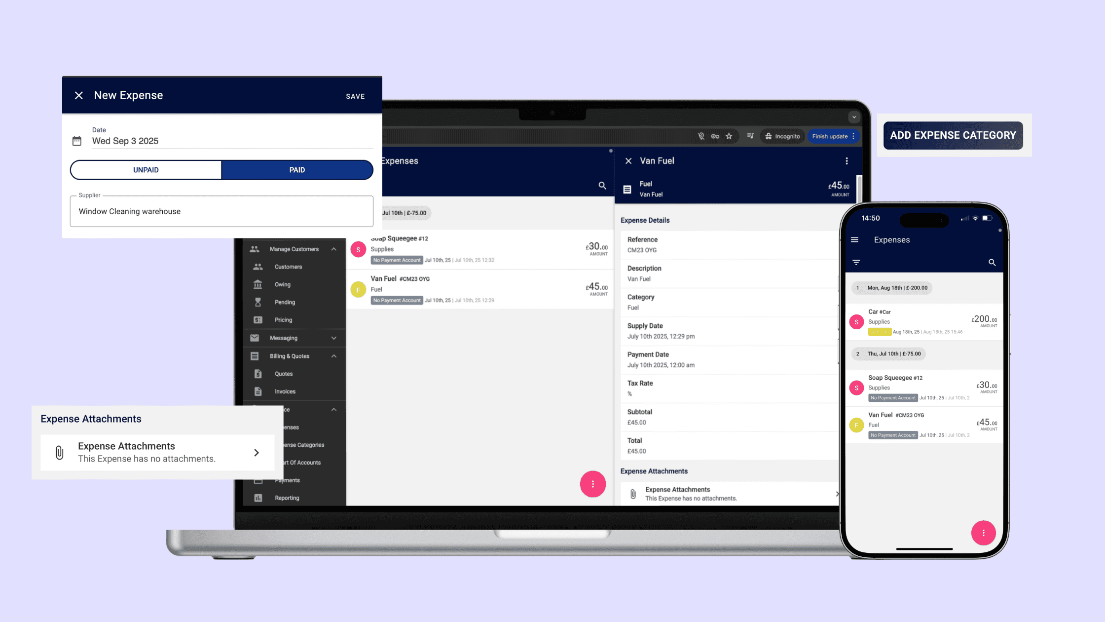 Easily log day-to-day business expenses such as fuel, subscriptions, software licences