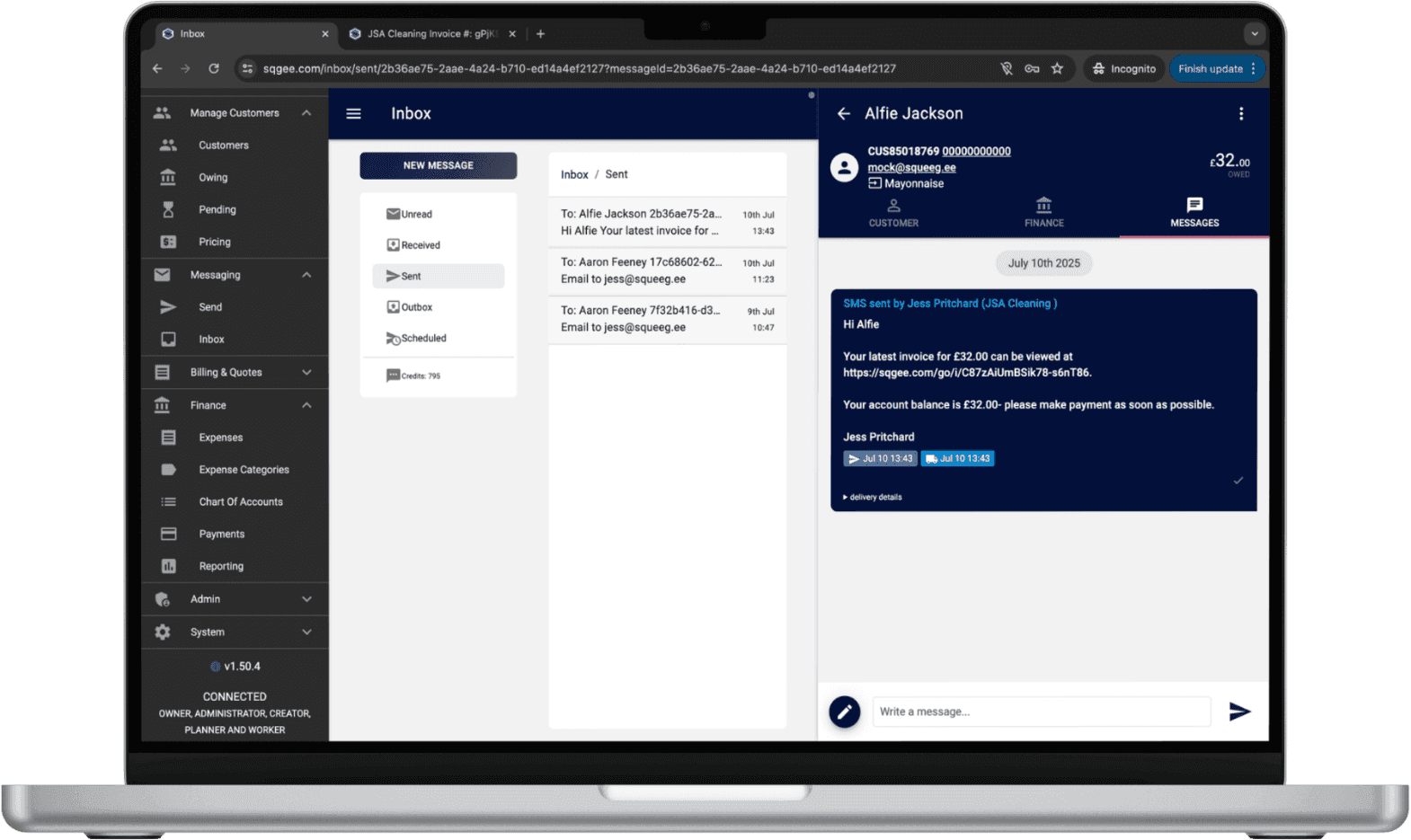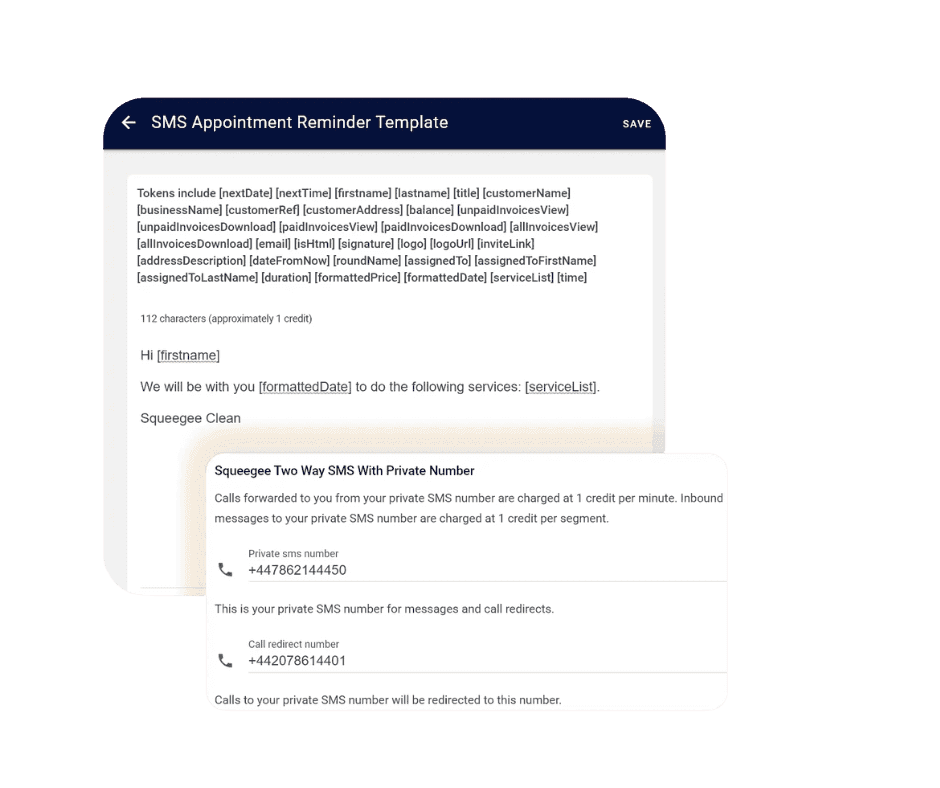 Squeegee Tokens let you personalise every message — Include customer names, job details and balances.