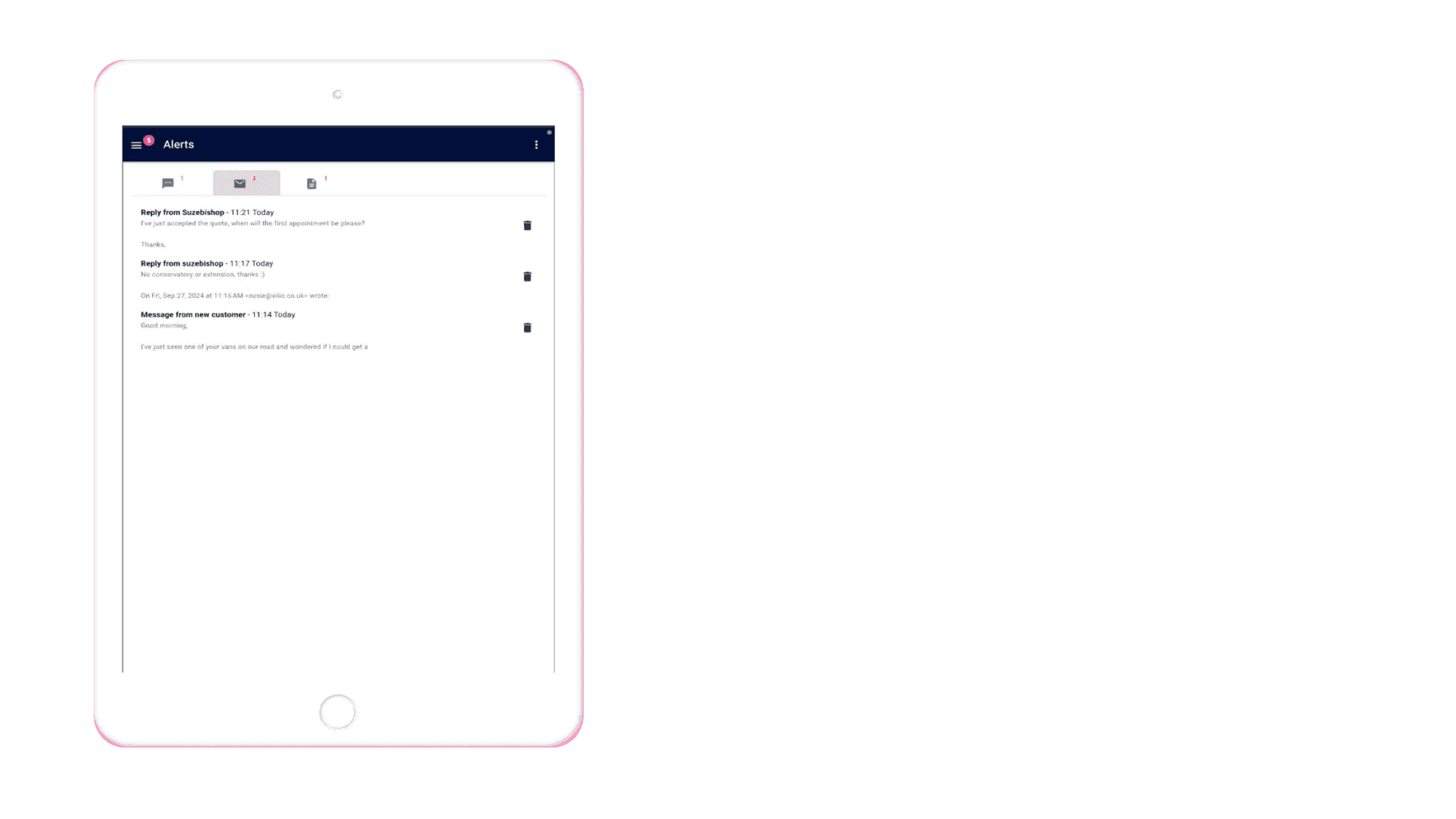 Tap the notification to jump straight into the customer’s message tab, view the full conversation and send a quick reply. Fast, seamless communication wherever you are.