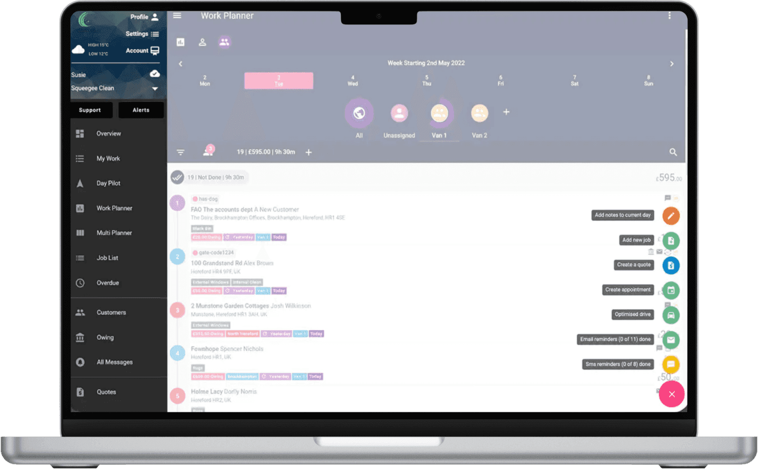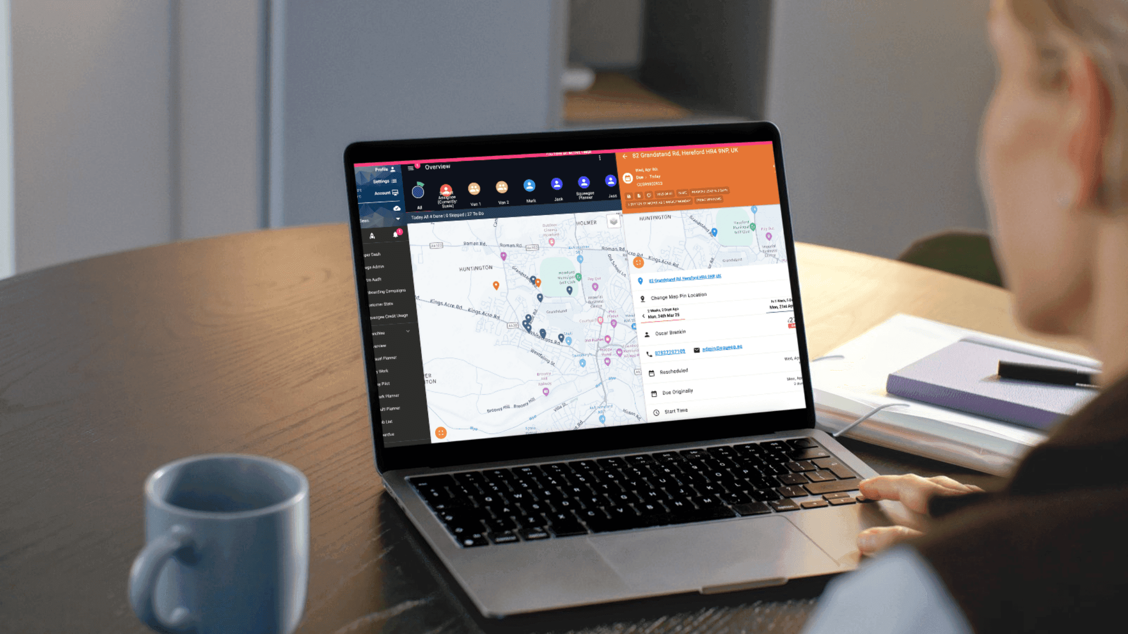 The optimised route is mirrored on every planner, with real-time updates if new jobs are added, work is reassigned, or jobs are marked as skipped.