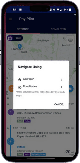 Allow workers to select the optimise drive feature to find the best route for them, or do this for workers as an admin from the work planner filtered by user or team