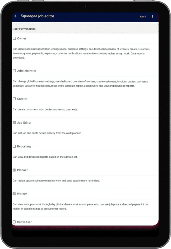 Managing your workers couldn't be simpler in Squeegee. View the workload at a glance for the day, week or month and quickly assign to the workers or teams best suited to the task.