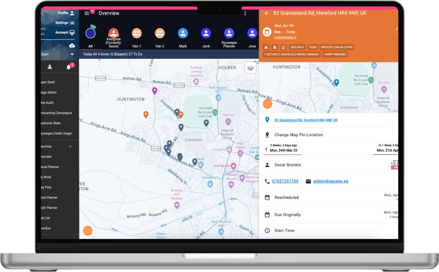 Squeegee has been a fantastic addition to our business. The system allows us to send an automatic invoice to customers as soon as the job is marked as complete. Not only this, with the integration of GoCardless and Stripe, it also allows automatic payments to be collected directly from the customer at the time of invoicing. This has significantly reduced the time needed to collect and chase payments and substantially reduced late payments within the business.