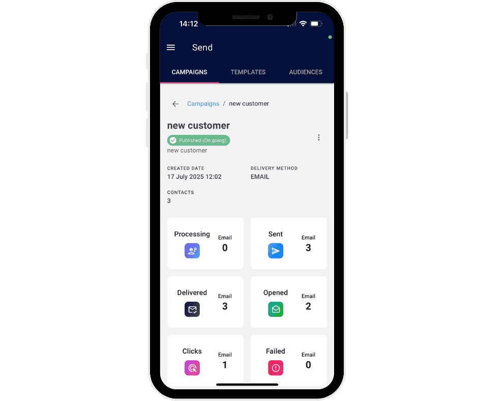 Use the drag-and-drop builder to create email and SMS campaigns in minutes—no design skills needed.